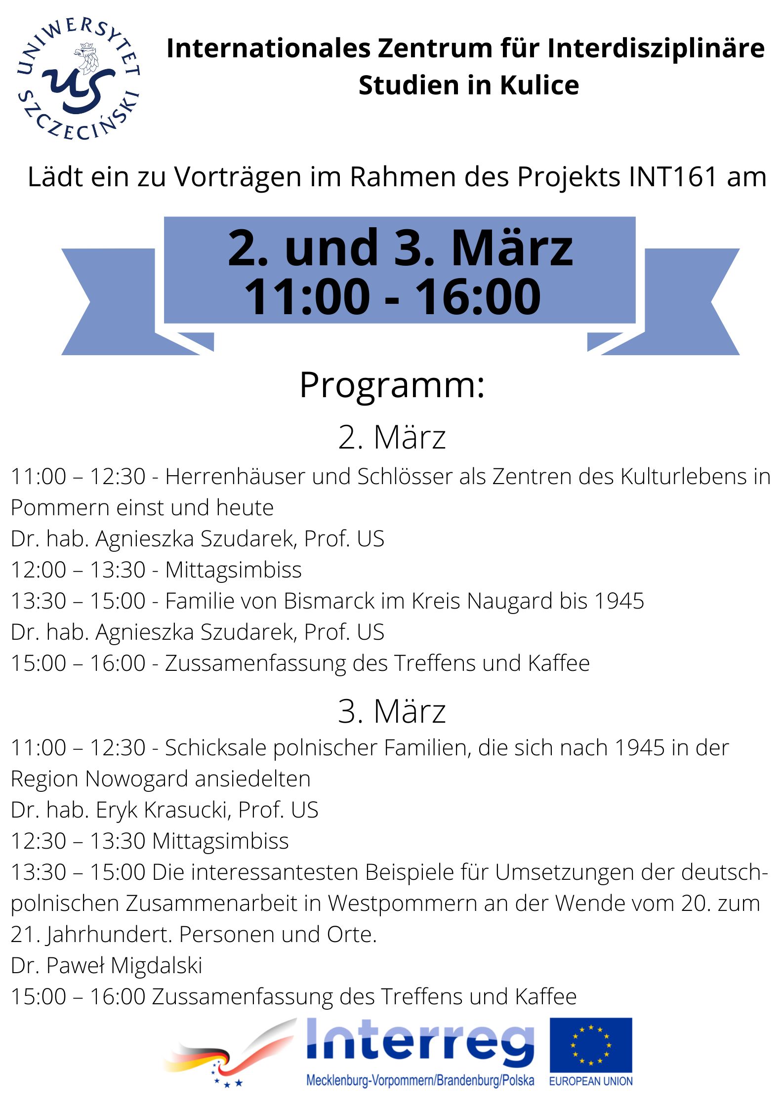 Projektpartner: Uniwersytet Szczecinski und Stadt Schwedt/Oder