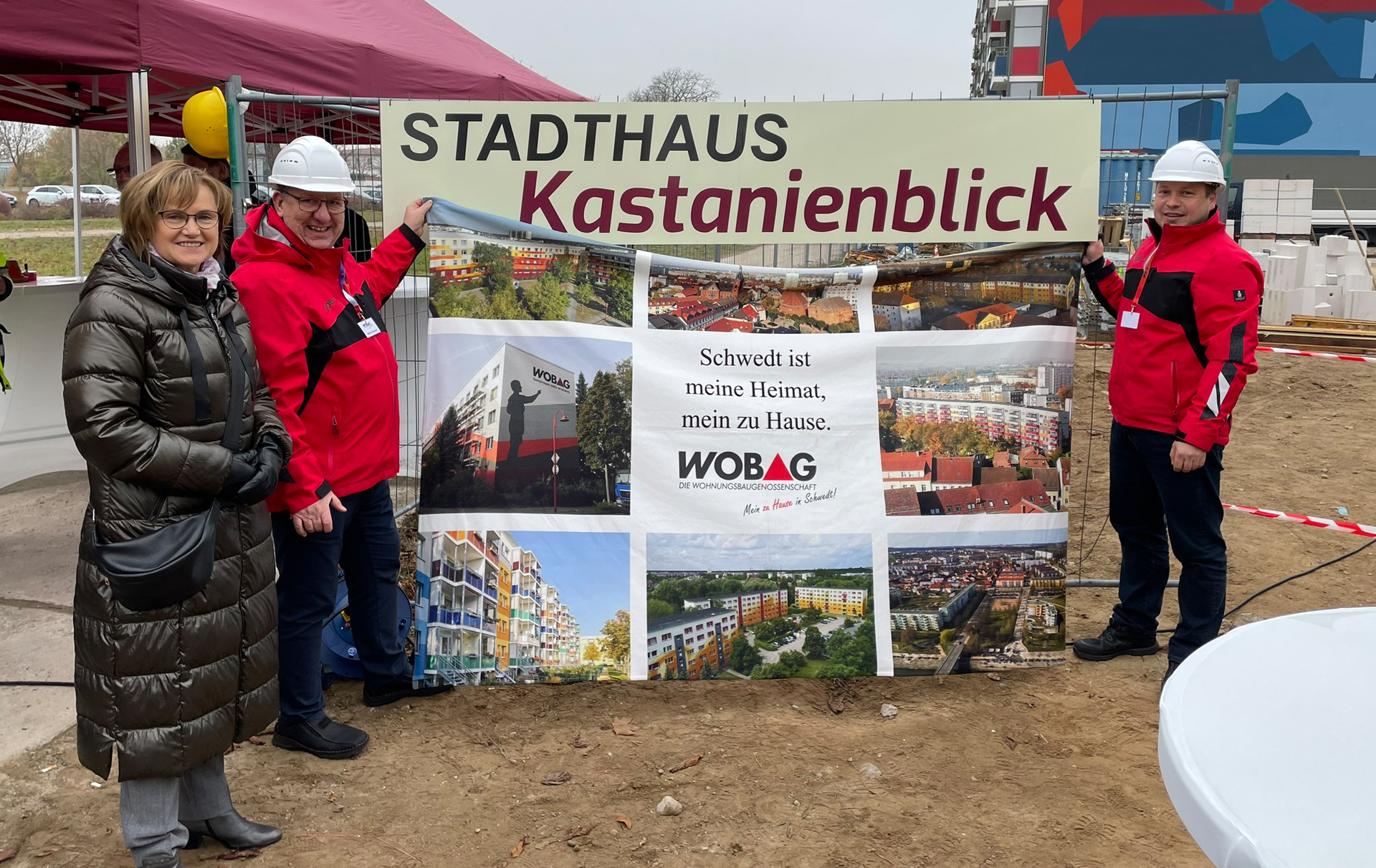 Am 6. November 2024 wurde der nächste Meilenstein mit der Grundsteinlegung des Stadthauses in den Kastanienhöfen gesetzt. Mit 18 hochwertigen Wohneinheiten, in Massivbauweise errichtet, besticht es durch funktionale Eleganz und eine Vielfalt an Wohnungen. Von gemütlichen 2-Zimmer-Wohnungen bis großzügigen 4-Zimmer-Wohnungen ist für jeden Bedarf etwas dabei. Die modernen Grundrisse und die hochwertige Ausstattung bieten höchsten Wohnkomfort. Ein besonderes Augenmerk liegt auf dem sozialen Wohnungsbau. Dank der Förderung der ILB können wir 75 % der Wohnungen mietpreisgebunden anbieten und so bezahlbaren Wohnraum schaffen.