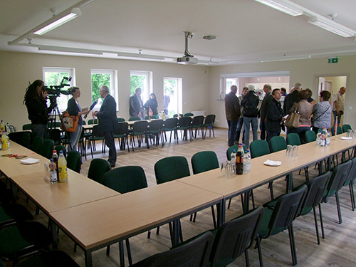 Der Mehrzweckraum steht zukünftig der örtlichen Gemeinschaft zur Nutzung zur Verfügung. Bis zu 60 Personen finden hier Platz. Der Neubau ist barrierefrei gestaltet.