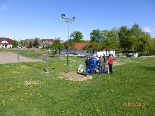 Der Verein hat in Eigenleistung den Kabelgraben für die Leitungsverlegung hergestellt und die Firma Butting auf Bitte des Vereins einen Lichtmast gebaut. Die eigentliche Festplatzbeleuchtung wurde dann über die Stadtverwaltung beauftragt, betreut und abgenommen. Abschließend wurde durch die Stadt noch Mutterboden und Rasensaat bereitgestellt, so dass im Rahmen eines Arbeitseinsatzes der Verein den Festplatz begradigen und Rasen neu angesät werden konnte. Mit dem Ergebnis können alle Beteiligten zufrieden sein.