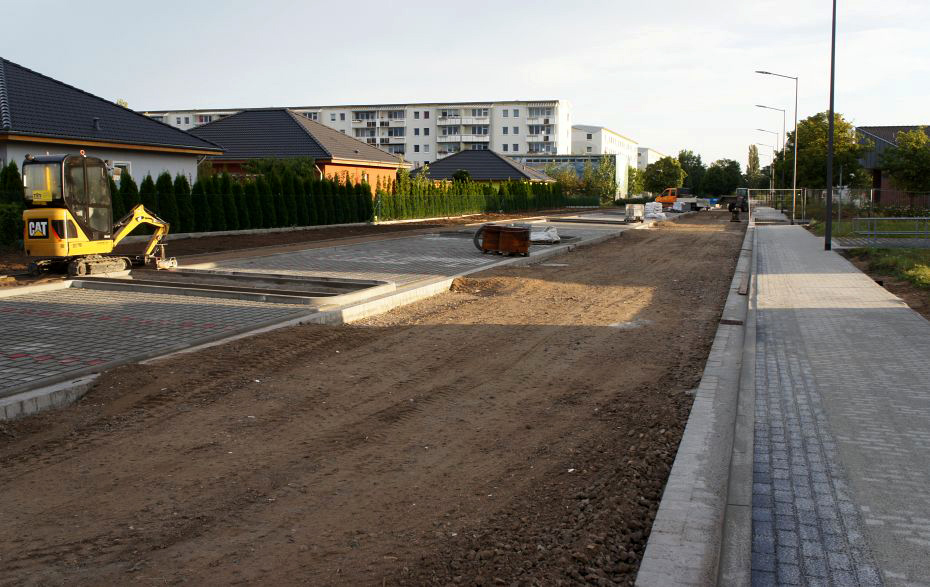 Mit der Bauausführung wurde die Straßen- und Tiefbaugesellschaft Ernst Röwer mbH aus Krackow beauftragt. Die Straßensperrung dauerte mehrere Wochen an, da neben umfangreichen Straßen- und Wegearbeiten auch die Straßenbeleuchtung sowie die Parkflächen mit Begleitgrün neu gestaltet wurden.