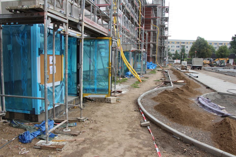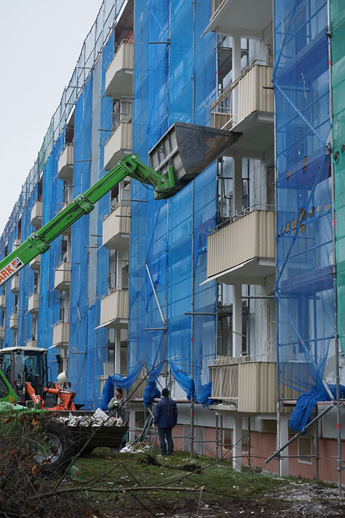 Ab Oktober 2016 erfolgten die Entkernungsarbeiten im Wohnblock der Clara-Zetkin-Straße 23–26, dem  letzten alte Block in der neu entstehenden Regenbogensiedlung, an deren Stelle die zukünftigen Bauarbeiten für die Stadthäuser 2 und 3 beginnen.