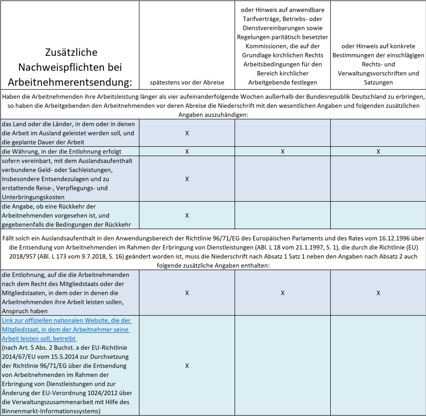Zusätzliche Informationspflichten sind für den Bereich der Arbeitnehmerentsendung geregelt.