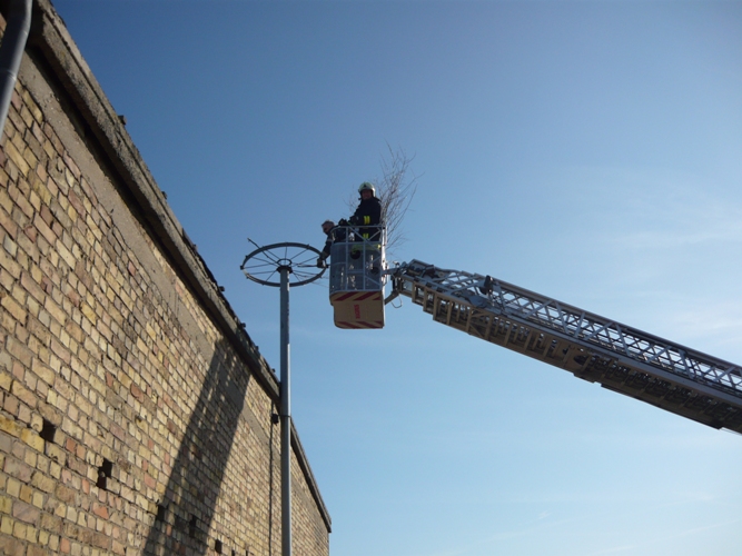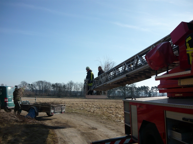 Am 05.03.2012 unterstützten die hauptamtlichen Kräfte den Naturschutzbund bei der Errichtung von zwei Storchennestern im Ortsteil Gatow sowie auf dem Gelände Argra Genossenschaft Schlösser mit der Drehleiter.