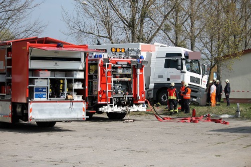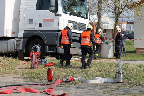Am 19.04.2012 wurden die hauptamtlichen Kräfte unter dem Stichwort „H: klein“ in der Handelsstraße alarmiert. Vor Ort stellte der Einsatzleiter fest, dass sich ein LKW den Fahrzeugtank beschädigt hat. Daraufhin lies der Einsatzleiter das Stichwort in „H: GSG 1“ ändern und forderte die Gefahrstoffeinheit (Löschzug 1) nach. Durch die Gefahrstoffeinheit wurde der Tank des Fahrzeugs (ca. 500 Liter) abgepumpt. Der bereits ausgetretene Kraftstoff wurde mit Ölbindemittel aufgenommen und das kontaminierte Erdreich wurde durch eine Firma ausgetauscht.