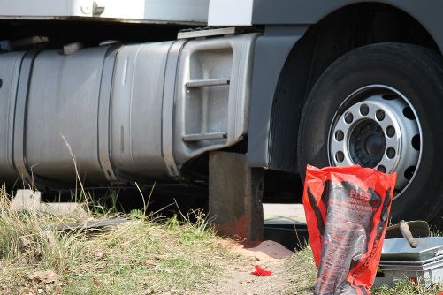Auslaufende Betriebsstoffe aus einem LKW (Archiv)
