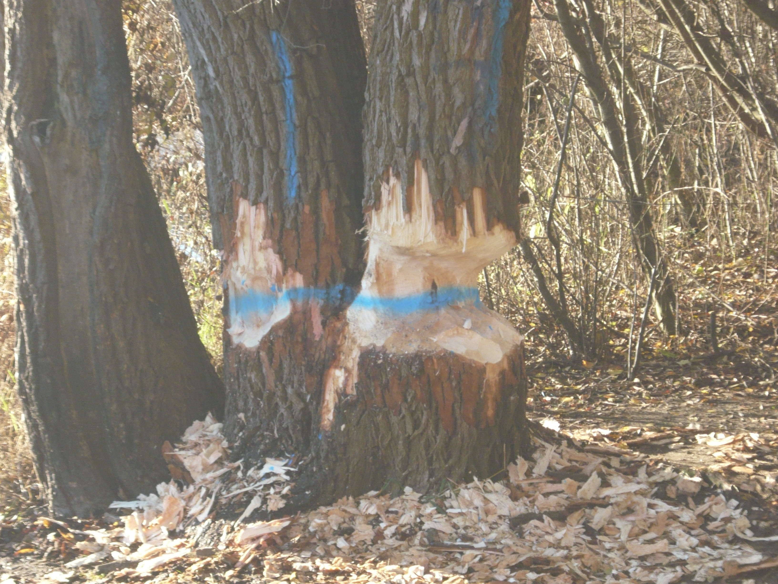 Die Beseitigung der Bäume erfolgte unter Einsatz einer Motorkettensäge.