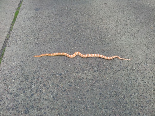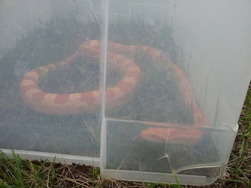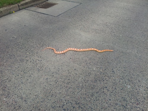 Zu einem Einsatz der anderen Art wurden die hauptamtlichen Kräfte am Morgen des 04.07.2012 alarmiert. Zwei Revierfahrer eines Sicherheitsunternehmens hatten auf ihrer Streifenfahrt eine Schlange gesehen. Die alarmierte Feuerwehr fing das Tier ein und übergab es einer Schwedter Tierhandlung. Laut Aussage handelte es sich um eine Kornnatter.