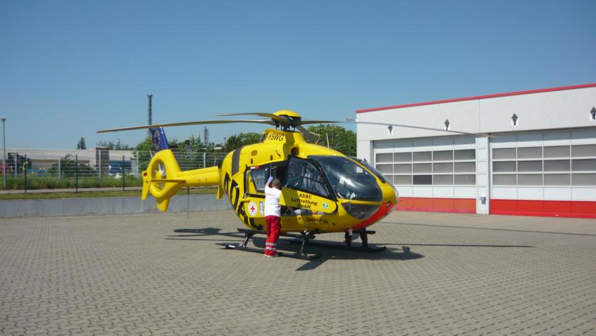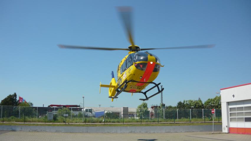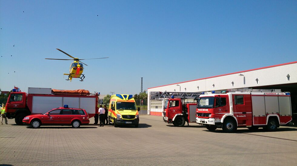 Am 22.05.2014 wurden die Hauptamtlichen Kräfte gegen 12.30 Uhr zu einer Person in Not in die Schwedter Steinstraße alarmiert. Eine verletzte Person wurde neben dem Gleiskörper aufgefunden. Zusammen mit dem Rettungsdienst wurde die Person versorgt und anschließend für den Abtransport mittels Rettungshubschrauber "Christoph 48" aus Neustrelitz vorbereitet. Durch die Besatzungen der Drehleiter und des Rüstwagens des 2. Zuges der Ortsfeuerwehr Schwedt wurde auf dem Gelände der UVG ein Landeplatz eingerichtet.