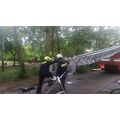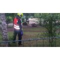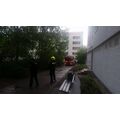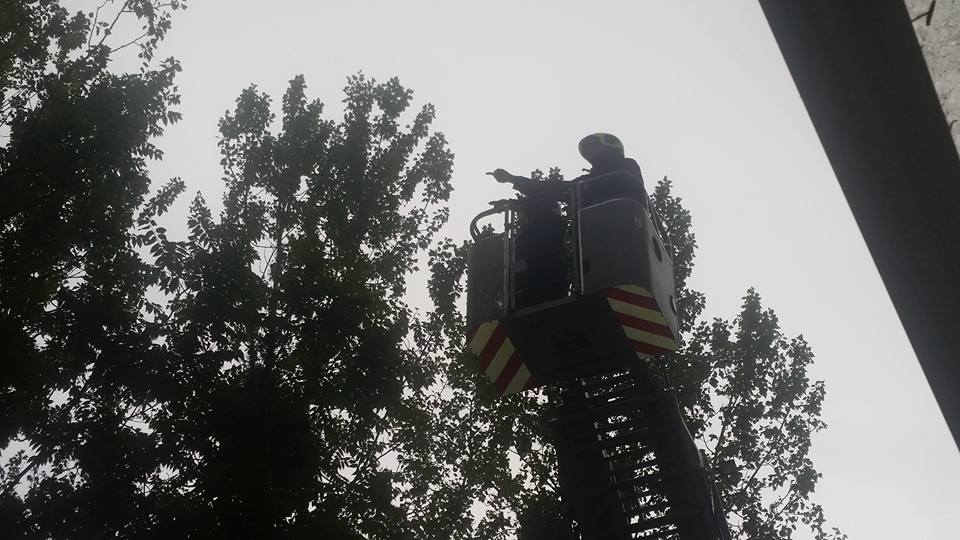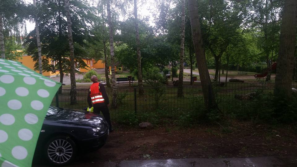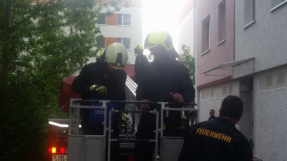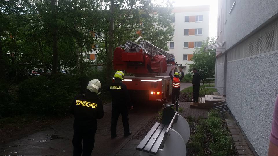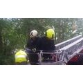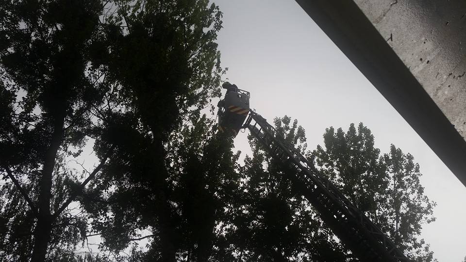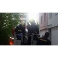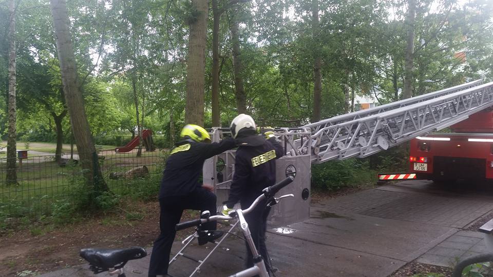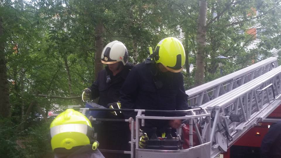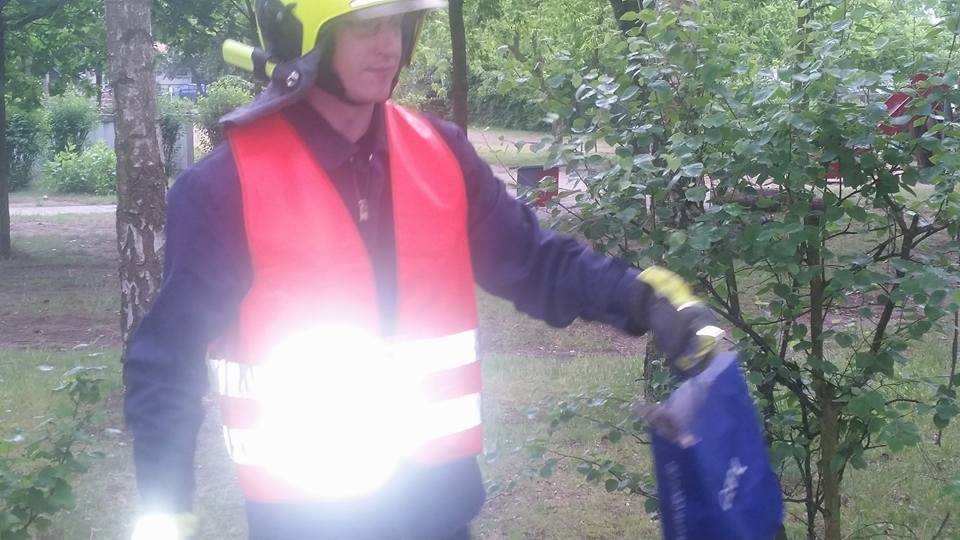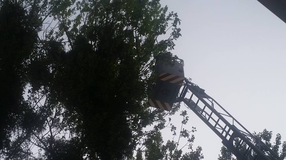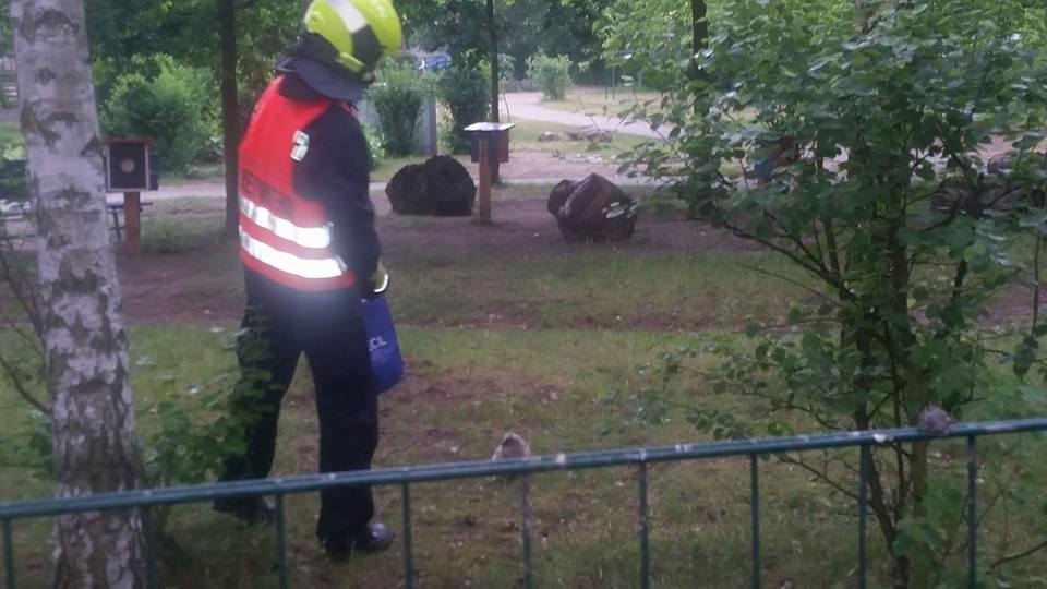 Die aus dem Nest gefallene Eule saß auf dem Gelände der Naturkita Lebenshilfe. Mit Hilfe der Drehleiter wurde erst nach dem Nest gesucht.