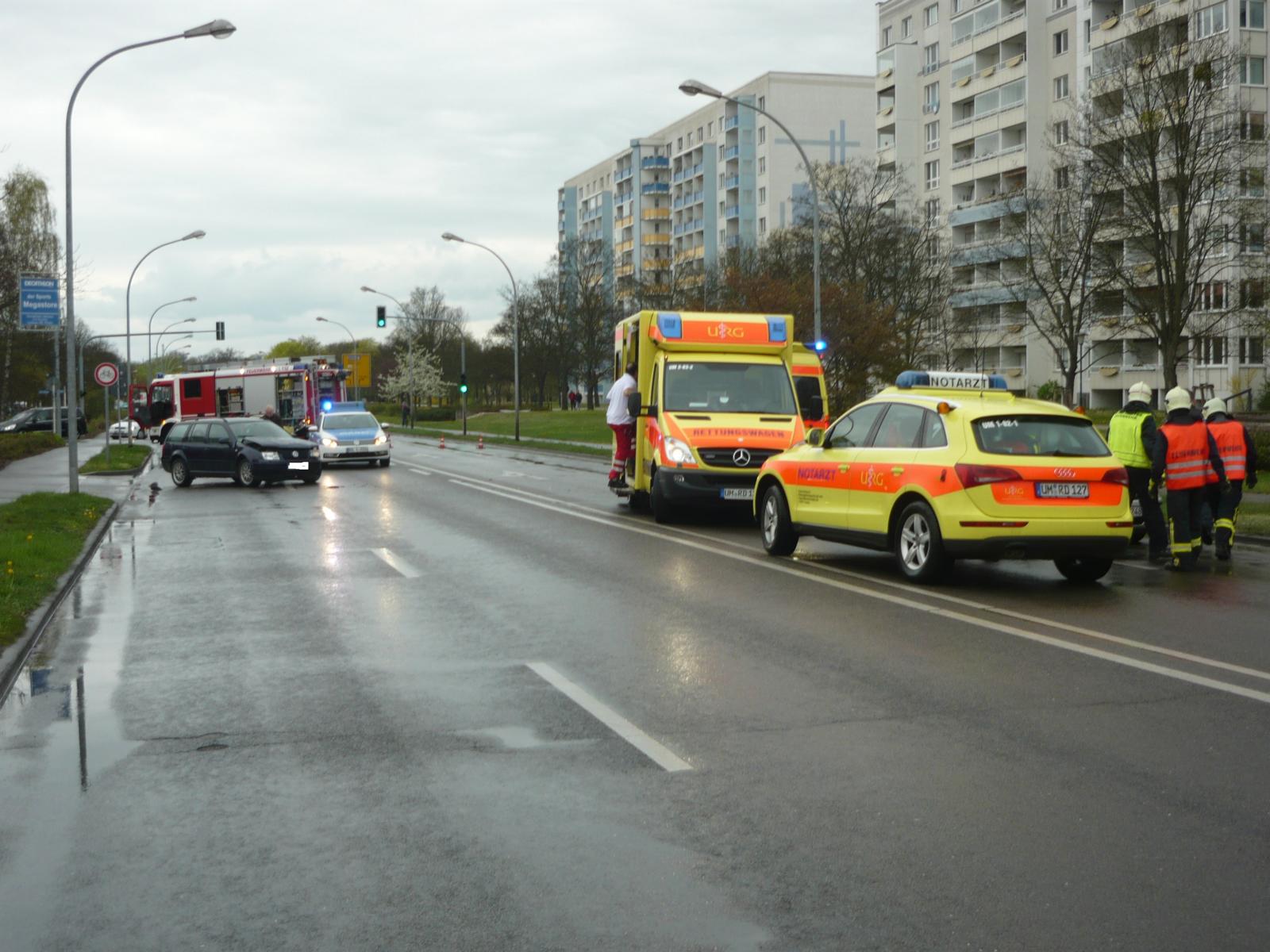 Am 08.04.2014 wurden die hauptamtlichen Kräfte um 13.30 Uhr zu einem Verkehrsunfall auf der Lindenallee auf Höhe der Stadtsparkasse alarmiert. Bei Ankunft an der Einsatzstelle traf ebenfalls der Rettungsdienst ein. Bei einem Fahrzeug wurden 2 Insassen verletzt und durch den Rettungsdienst versorgt. Die hauptamtlichen Kräfte unterstützten hierbei. Weiterhin wurde an beiden Fahrzeugen die Batterie abgeklemmt und auslaufende Betriebsstoffe mittels Bindemittel aufgenommen.