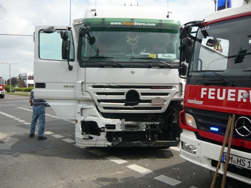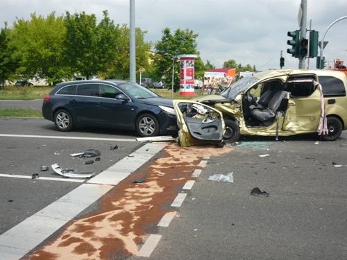 Am 04.07.2012 ereignete sich auf der Kreuzung Werner-Seelenbinder-Straße/Handelsstraße ein schwerer Verkehrsunfall. Im Kreuzungsbereich übersah ein PKW-Fahrer einen herannahenden LKW, wodurch es zu dem Unfall kam. Dabei wurde der Fahrer des PKWs eingeklemmt und musste durch die Feuerwehr mit Rettungschere und -spreizer aus seinem Fahrzeug befreit werden. Der Fahrer wurde mit dem Hubschrauber in ein Berliner Krankenhaus geflogen. Nachdem die auslaufenden Betriebsstoffe aufgenommen und die Fahrbahn beräumt war, wurde die Einsatzstelle an die Polizei übergeben.