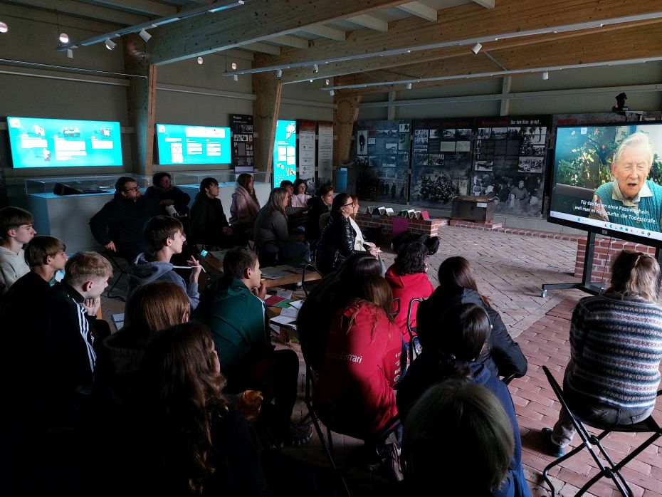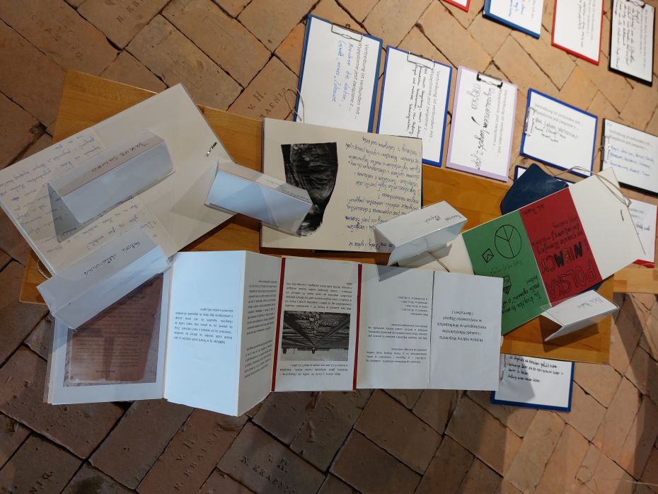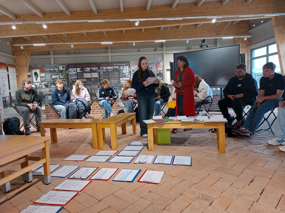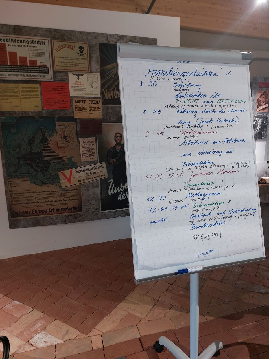 Am 15. 9. 2025 startete im Jüdischen Museum Schwedt/Oder ein deutsch-polnisches Schülerprojekt zur aktuellen Ausstellung „Vertriebene 1939 - Deportationen von polnischen Bürgern aus den ins Dritte Reich eingegliederten Gebieten". 34 Schülerinnen und Schüler der Altersstufen 14 – 17 aus beiden Ländern sahen sich gemeinsam die Dokumentation „Eine Blonde Provinz" an und kamen anschließend mit dem Filmemacher Jacek Kubiak ins Gespräch. Der Beigeordnete der Stadt Schwedt/Oder, Silvio Moritz gedachte mit bewegenden Worten der Geschichte einer eng befreundeten Familie, deren Schicksal der Zweite Weltkrieg noch bis in die jüngste Vergangenheit prägte. Die Jugendlichen hatten die Gelegenheit, ihre Gedanken und Emotionen zu verschiedenen Fragen auf vorbereitete Bögen nieder zu schreiben. Am Nachmittag wurden dann in der Galerie am Kietz zehnseitige Leporellos gebaut und die Cover gestaltet. In zweiwöchiger Arbeit im eigenen Lebensumfeld waren die Schülerinnen und Schüler aufgerufen, in ihren Familien oder Freundeskreisen nach Erinnerungen zum Zweiten Weltkrieg zu forschen. Die Faltbüchlein dienten zum Festhalten dieser Erzählungen in Bildern, Fotos, Collagen, Zeichnungen, Berichten oder Zeitungsausschnitten. Wer keine Migrationsgeschichte in seinem eigenen Umfeld finden konnte, sollte sich mit den Begriffen "Flucht" und "Vertreibung" auseinander setzen. Das Ergebnis war für alle Beteiligten sehr berührend. Am zweiten Präsenztag, 29.9.25, präsentierten die Jugendlichen in kleinen Gruppen ihre nun gefüllten Leporellos. Sie wünschten sich mehr solcher Projekte, bei denen alle miteinander ins Gespräch kommen und durch gemeinsame Arbeit Erfahrungen teilen können. Die Leporellos werden die im nächsten Jahr in einer Ausstellung im Jüdischen Museum Schwedt/Oder zu sehen sein.