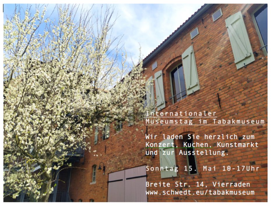 Das Tabakmuseum Vierraden ist auch in diesem Jahr mit dabei. In dem schönen Museumsgarten, wo es gerade frühlingshaft sprießt und brummt, können Besucher wieder gemeinsam feiern und verweilen.