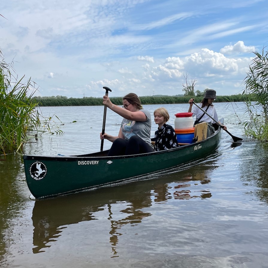 Am nächsten Morgen erwartete die Jugendlichen eine Kanufahrt durch die schöne Nationalparklandschaft, bei der sie die Natur fotografieren und zeichnen konnten. Statt Hochhäuser und Menschen sieht Romelle nun Wasser und Pflanzen.
