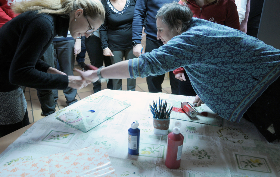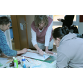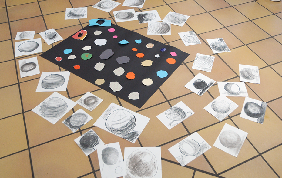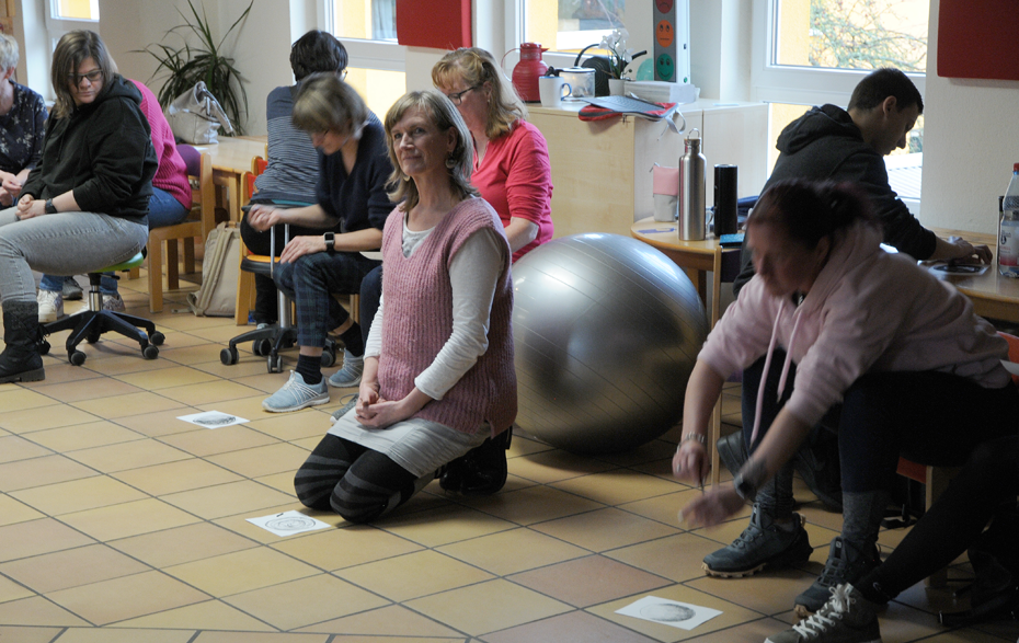 Frau Wagner erklärte, nachdem die Erzieher/innen kugelförmige Figuren mit Kohlestiften zeichnete, anhand ihres Vortrages, was im Gehirn bei dieser Übung passiert. Räumliches Denken als einen wesentlichen Teil von Logik und Intelligenz kann sich nur über das Machen und Begreifen mit den Händen sowie dem Erkennen verschiedener Bilder (also auch Eindrücke) im Gehirn verankern.