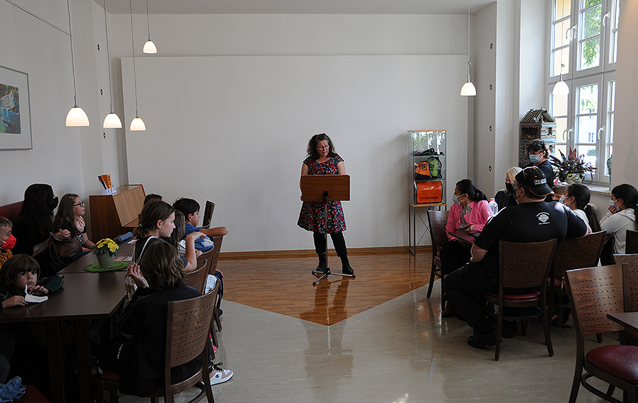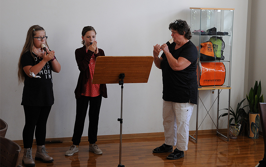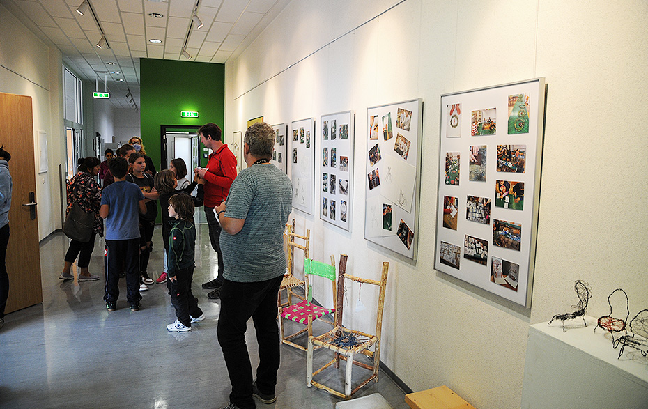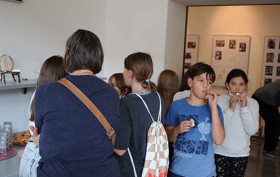 Im Aufenthaltsraum und auf den Fluren der Musik- und Kunstschule war glücklicherweise genug Platz für alle Besucher, die zur Eröffnung der Ausstellung mit dem Titel „Platz da! Hier bin ich!“ gekommen waren. Platz genommen hatten auch die jungen Macher der Ausstellung, Schüler der Klassenstufe 5 der Evangelischen Salveytal Grundschule Tantow, die ihre Arbeitsergebnisse der vergangenen Schuljahre präsentieren.