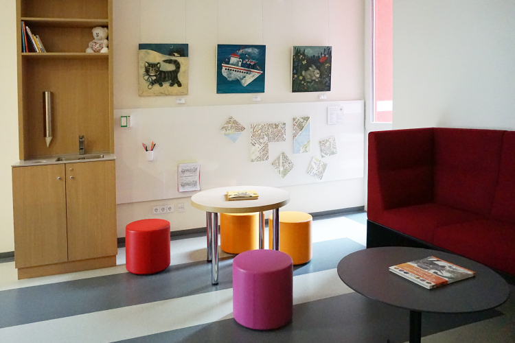 Im Wartebereich in der 1. Ebene befindet sich die Kinderspielecke. Gegenüber steht die Fotobox für die Erstellung digitaler Passbilder zur Selbstbedieung bereit.