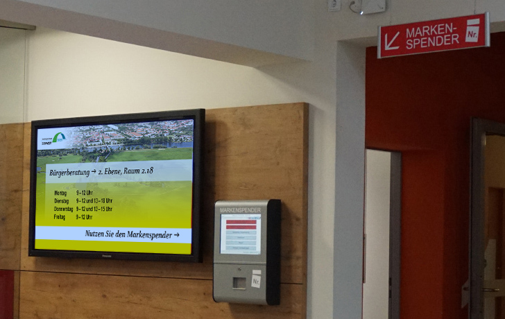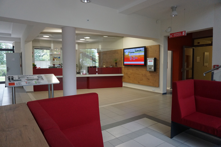 An die Aufrufanlage sind mehrere Bereiche angeschlossen. Am zentralen Markenspender im Foyer stehen folgende Bereiche bzw. Anliegen zur Auswahl: