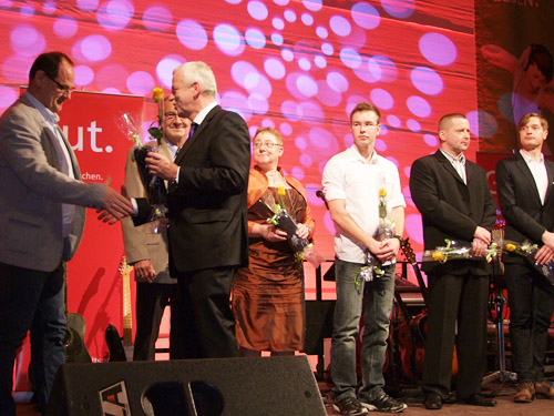 Bürgermeister Jürgen Polzehl pflegt seit Jahren die schöne Tradition, den Sportlerball dafür zu nutzen, den Sportlern seiner Stadt für herausragende Leistungen im Vorjahr Dank und Anerkennung auszusprechen.