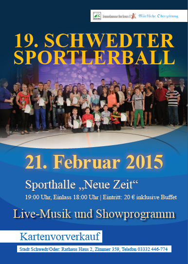 Der 19. Schwedter Sportlerball der Stadt Schwedt/Oder, der Märkischen Oderzeitung und der Interessengemeinschaft Sport Schwedt e. V. fand am 21. Februar 2015 statt.