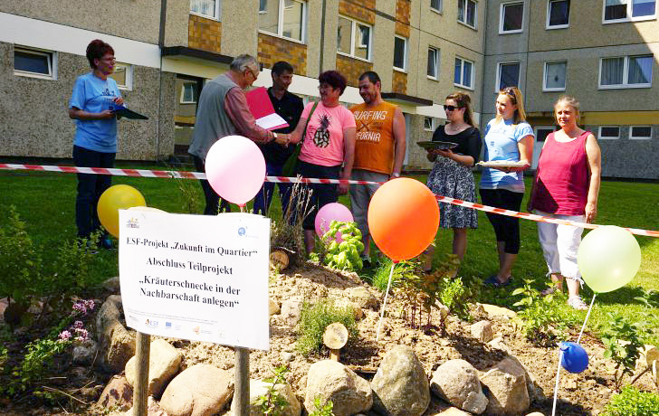 Am 15. Juli 2017 wurde ein weiteres Teilprojekt im Rahmen des ESF-Bundesprogramms „Bildung, Wirtschaft, Arbeit im Quartier – BIWAQ“ abgeschlossen. Die seit Frühjahr 2017 durch Teilnehmer/innen errichtete Kräuterschnecke im Innenhof der Felchower Straße wurde als Höhepunkt der Veranstaltung feierlich eingeweiht.