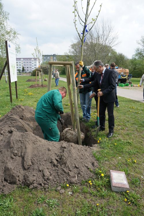 Eine zweite Silber-Linde pflanzten zum gleichen Zeitpunkt die Mitglieder der Europa-Union Uckermark und der polnischen Partnerorganisation Chojna-Gryfino.