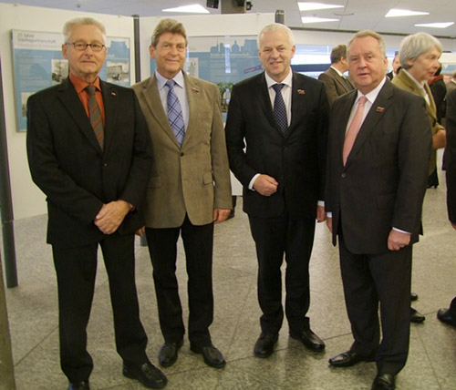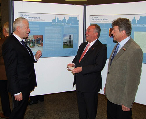 Anlässlich der Eröffnung der Ausstellung „25 Jahre Städtepartnerschaft Leverkusen –Schwedt“ am Sonntag, 30. November 2014, im Forum nutzten beide Stadtoberhäupter die Gelegenheit, noch einmal an die Anfangsjahre der Partnerschaft zu erinnern. Bis heute haben viele dieser Kontakte, die damals geknüpft wurden, Bestand. Sportler, Künstler, Vereine, ‐ etwa die Marinekameradschaft mit ihrem Shanty‐Chor ‐, der Katholikenrat und auch die Karnevalisten beider Kommunen kommen regelmäßig zusammen.