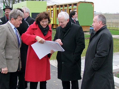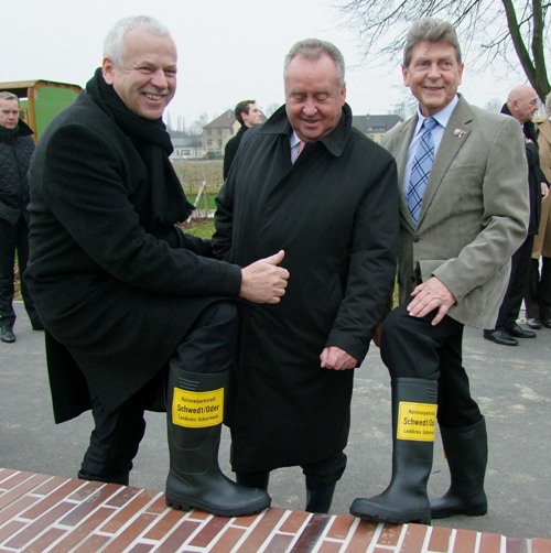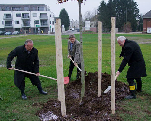 Zur Erinnerung an das 25‐jährige Partnerschaftsjubiläum pflanzten Reinhard Buchhorn und Jürgen Polzehl anschließend mit einer Eiche, einer Buche und einer Kiefer drei für Deutschland typische Bäume auf dem Gelände der neuen Bahnstadt.