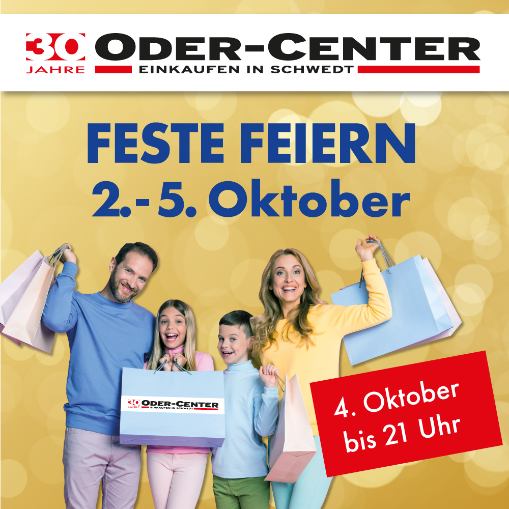Wir feiern im Oder-Center direkt in der Mitte mit professionelle Lichtshow und professioneller Getränke- und Essenversorgung by DSVcatering! 30 jähriges Jubiläum heißt auch Partymusik der letzten 30 Jahre. Schlager und ein guter Mix aus den Charts der letzten 30 Jahre garantiert. Eingang über Media-Markt Seite. Veranstaltung ab 18 Jahren – Eintritt ab 16 Jahre nur mit Muttizettel