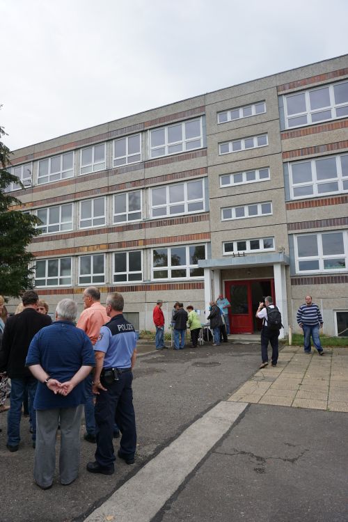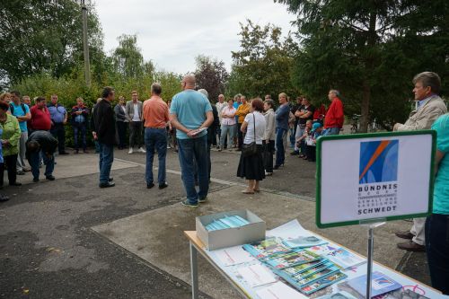 Frank Fillbrunn, 2. Beigeordneter des Landkreises Uckermark, Hans-Jürgen Klinder, Leiter der Polizeiinspektion Uckermark, die Integrationsbeauftragte Annette Clauß, der Leiter des Uckermärkischen Bildungsverbundes Volkmar Ritter, Vertreter des Bündnisses gegen Fremdenfeindlichkeit, Gewalt und Rassismus Schwedt sowie Bürgermeister Jürgen Polzehl standen Rede und Antwort.