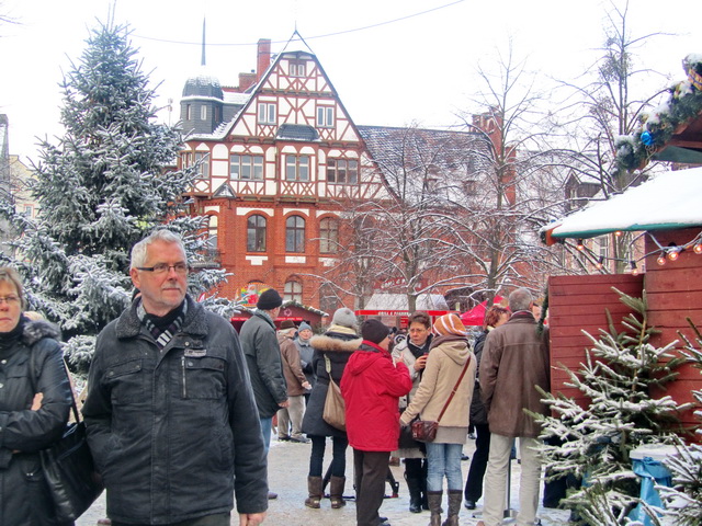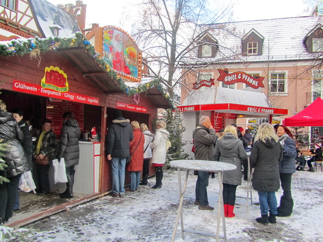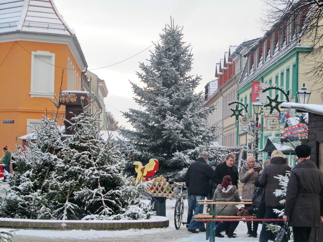 Vom 6. bis 9. Dezember 2012 findet der Schwedter Stollenmarkt auf dem Vierradener Platz und der Vierradener Straße statt. Pünktlich zur Eröffnung kamen Schnee und Kälte.