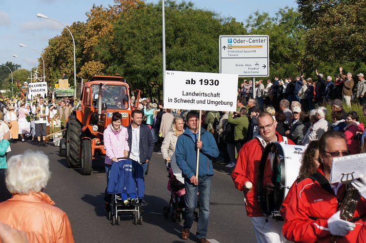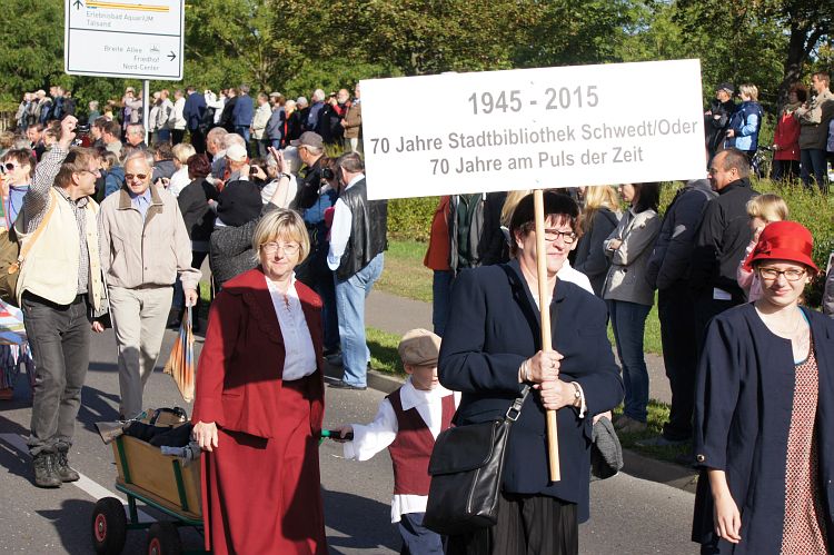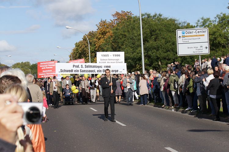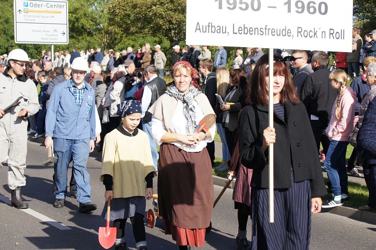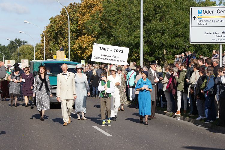 Anlässlich der 750-Jahr-Feier wurde ein historischer Festumzug vorbereitet. Der Umzug mit über 1.300 Teilnehmern startete an der Kreuzung Lindenallee/Julian-Marchlewski-Ring und führte die gesamte Lindenallee entlang. An drei Standorten wurde moderiert.