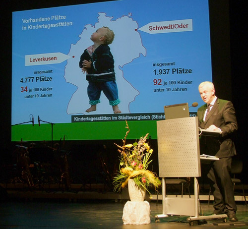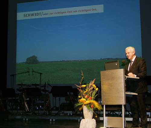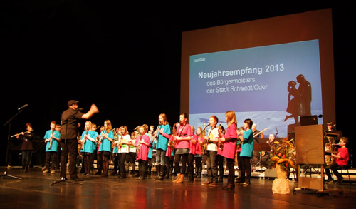Im Großen Saal hielt Jürgen Polzehl seine Neujahrsansprache. In zwei Filmen zeigte er die Erfolge Schwedter Kindertagesstätten im vergangenen Jahr und einen Jahresrückblick 2012. Beide Videos sind online zu sehen. Polzehl stellte außerdem in seinem Vortrag die neue Imagebroschüre der Stadt mit dem Motto „SCHWEDT/oder zur richtigen Zeit am richtigen Ort“ vor.
