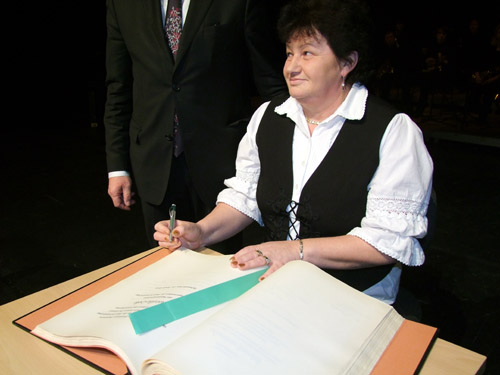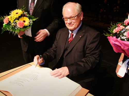Ins Goldene Buch der Stadt trugen sich die Leiterin des rumänischen Kinderheims Ocland, Rozália Cseke, und der Vorstandsvorsitzende des Evangelischen Jugend- und Fürsorgewerkes, Siegfried Dreusicke, ein.