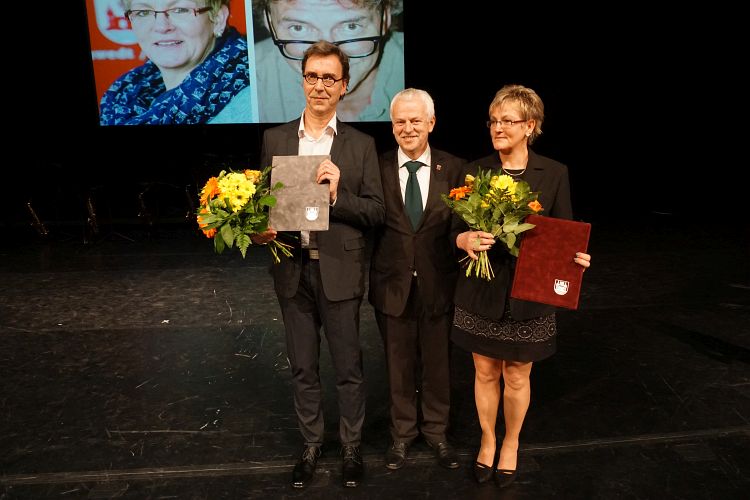 In diesem Jahr führte wieder AG-City Geschäftstellenleiterin Ireen Kautz durch das einstündige Programm und sorgte für einen heiteren, kurzweiligen Abend. Wie in den letzten Jahren wurde beim Neujahrsempfang der Jahresrückblick 2015 gezeigt, nicht chronologisch sondern nach Themen sortiert. Ein Höhepunkt der Veranstaltung war auch die Verleihung des Ehrenpreises. Geehrt wurden in diesem Jahr Frau Carmen Frühbrodt und Herr Uwe Schmiedel.
