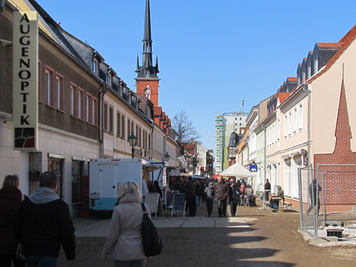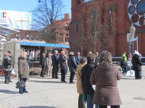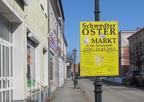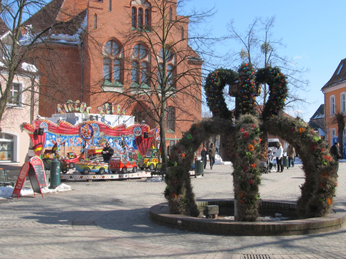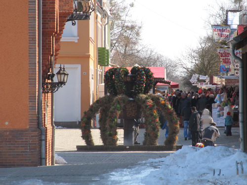 Schnee zum Ostermarkt. Die Kälte hat die Besucher allerdings nicht abgeschreckt, schließlich lockte der strahlende Sonnenschein an beiden Tagen die Schwedter in die Innenstadt.