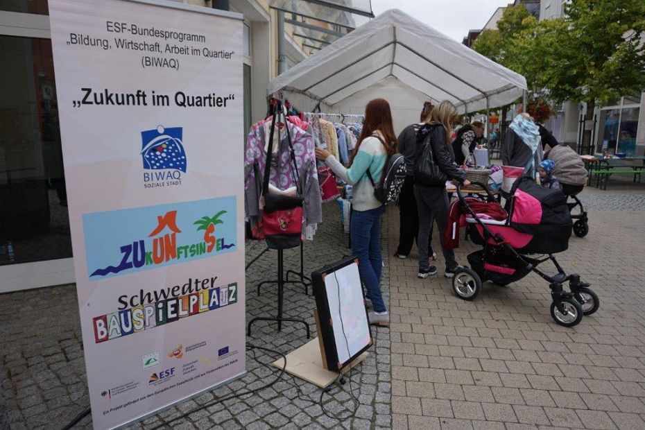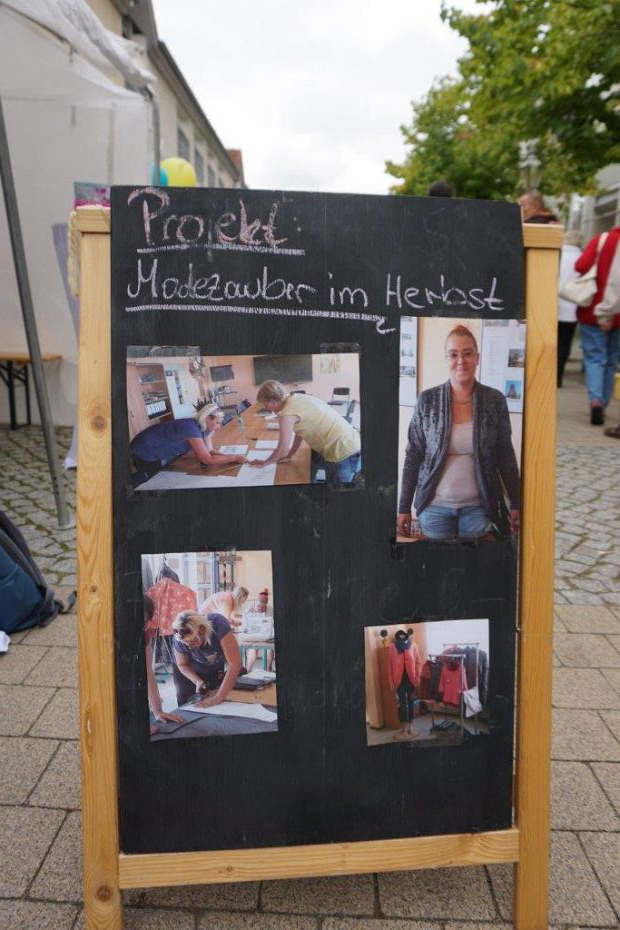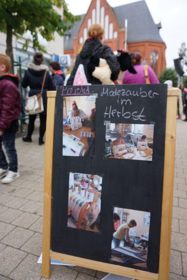 Die Schaustellung wurde außerdem genutzt, um auf die im Oktober 2017 beginnende Qualifikation zum Thema „Nähst du schon oder kaufst du noch?“ und andere Angebote des Projektbüros im Rahmen des BIWAQ aufmerksam zu machen.
