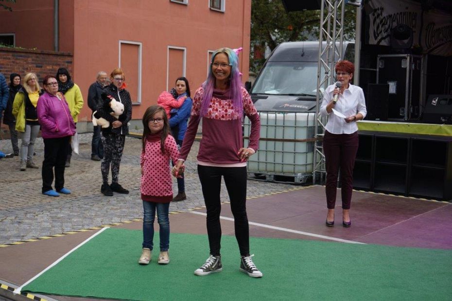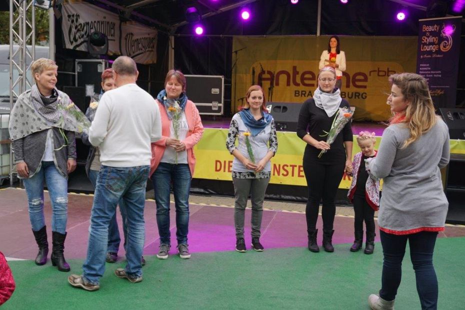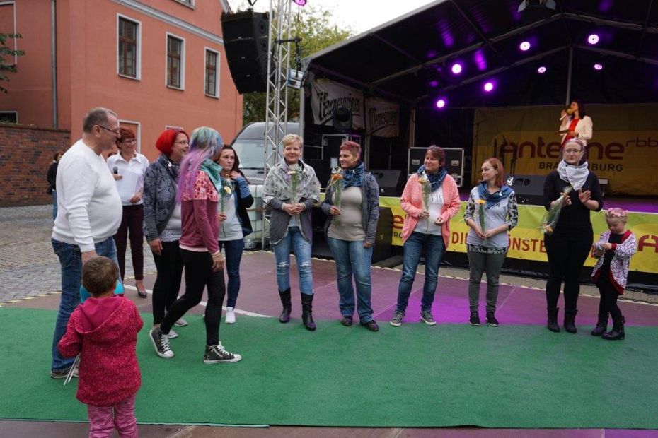 Stolz präsentierten die Näherinnen ihre selbst entworfenen und genähten Stücke höchstpersönlich auf dem Laufsteg der großen Antenne-Brandenburg-Bühne einem großen Publikum.