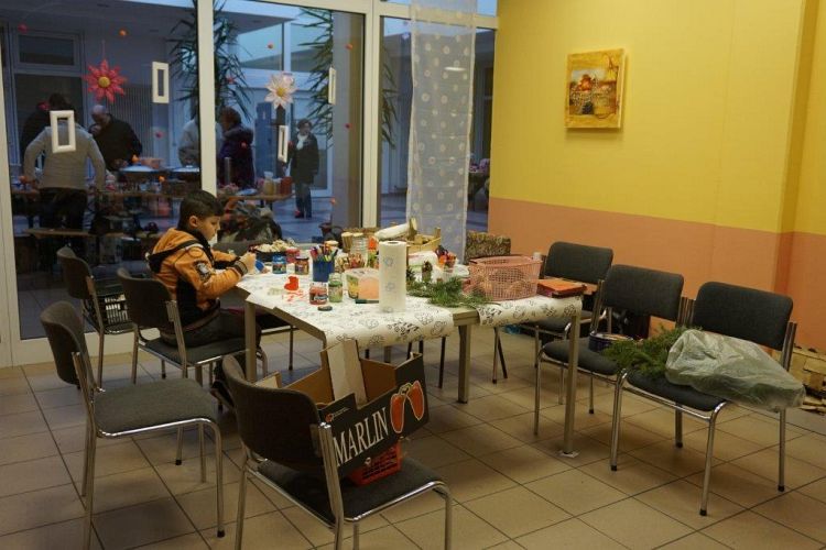 Auf dem Vorplatz stand ein breites Angebot an Plätzchen, Knüppelteig, Bratwurst, Glühwein und Kinderpunsch für das leibliche Wohl zur Verfügung. Eine Feuerschale sorgte dabei für eine gemütliche Zusammenkunft der Quartiersbewohner und bot eine gute Grundlage für interessante Gespräche zum Kennenlernen, zum Austausch und zur Projektvorstellung.