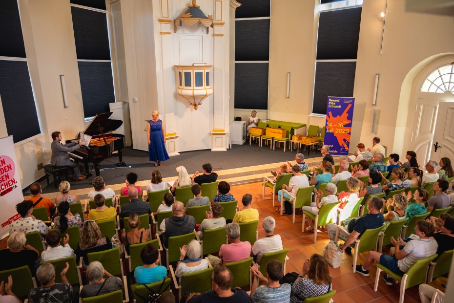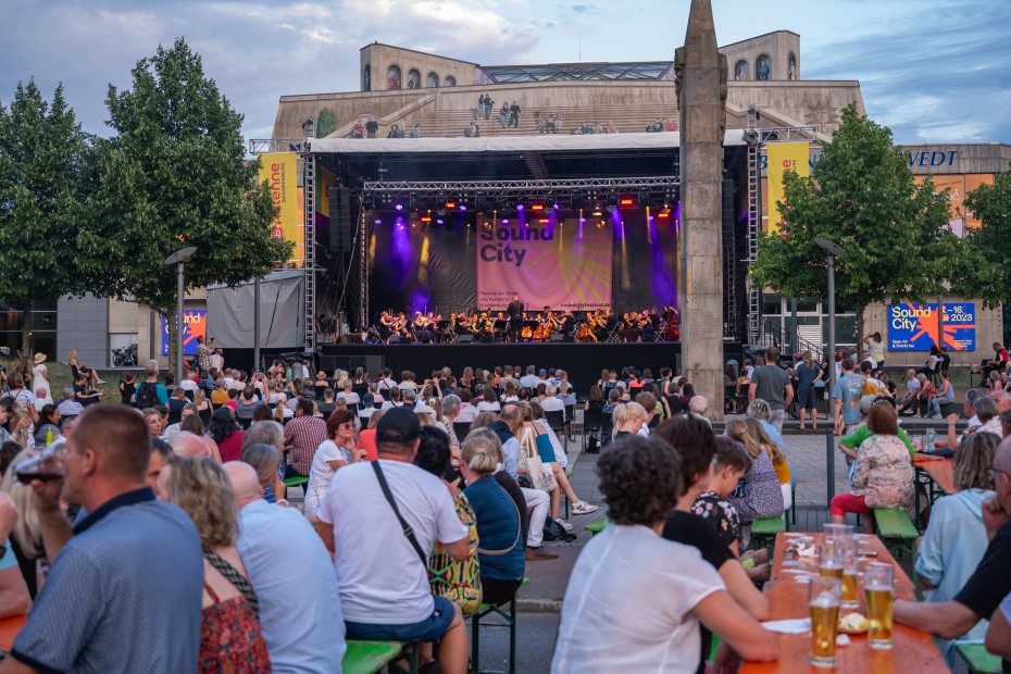 Am 16. Juli 2023 übergab Bürgermeisterin Annekathrin Hoppe den Staffelstab an Andreas Igel, den Bürgermeister von Ludwigsfelde, der Ausrichterstadt von Sound City 2025.