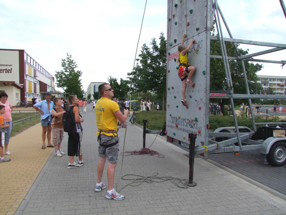 Bürgermeister Jürgen Polzehl durchschnitt gemeinsam mit Vertretern der Politik, den Baubetrieben, den Planern sowie den zukünftigen Nutzern das obligatorische „Rote Band" durchschneiden und übergab den Bürger- und Sportpark seiner offiziellen Bestimmung. Beim anschließenden Spiel- und Sportnachmittag stellten sich die künftigen Hauptnutzer des Bürger- und Sportparks mit einem vielfältigen Sportprogramm dem Publikum vor. Der Fußballsportverein City 76 Schwedt e. V. veranstaltete ein „Alte Herren“-Fußballspiel gemeinsam mit dem Turn- und Sportverein Blau-Weiß 65 Schwedt e. V. Die einzelnen Abteilungen des TSV Blau-Weiß stellten sich vor und luden zum Mitmachen ein. Der Modellclub Schwedt/Oder e. V. war mit einigen Modellautos zum Ansehen und Ausprobieren dabei. Die Brandenburgische Sportjugend kam mit dem Inlineskating-Mobil – im Gepäck 50 Inliner inklusive Schutzausrüstung –, um die neue Skating-Rundbahn einzuweihen. Der Jugendklub Külzviertel veranstaltete eine Spiel- und Sportstrecke zur aktiven Betätigung.