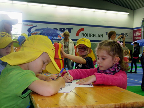In der Zeit von 9 bis 11 Uhr konnten sie speziell die Kleinsten aus den Kindertagesstätten auf buntes Spieltreiben und einem kreativen Animationsprogramm freuen. Dazu ausgelassen in der Hüpfburg toben, sich als Lieblingsfigur schminken lassen und eine "richtige" Neptuntaufe erleben.