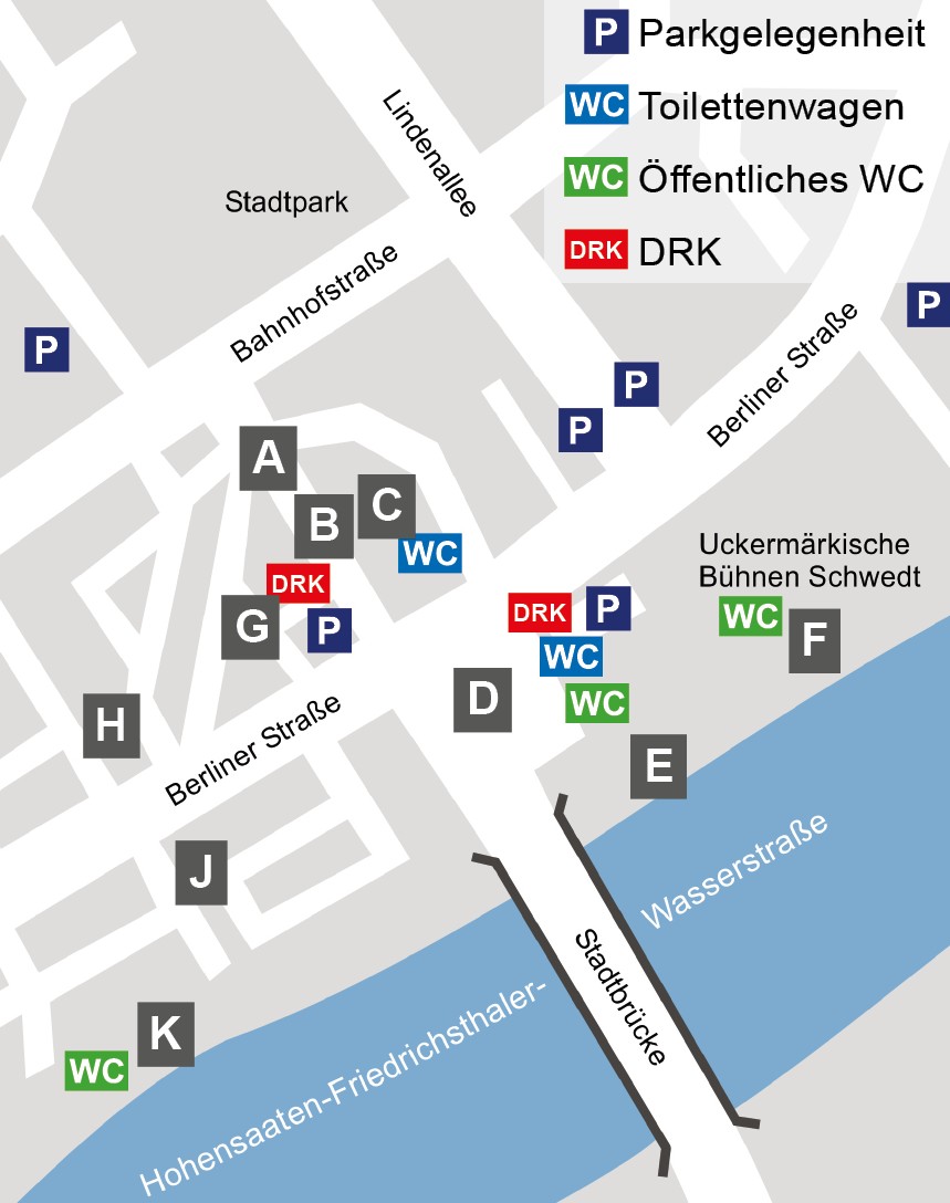 Im Innenstadtbereich ist mit Verkehrseinschränkungen zu rechnen. Parkplätze gibt es am und hinter dem „Kosmonaut“ in der Berliner Straße, zwischen Alter Markt und Uckermärkische Bühnen, auf der Lindenallee und in der Dr.-Theodor-Neubauer-Straße.
