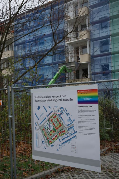 Viele Schwedterinnen und Schwedter nehmen regen Anteil am aktuellen Umbaugeschehen in diesem Stadtviertel, welches ab 1959 entstand. In der Clara-Zetkin-Straße gibt es neben den Wohnhäusern auch die Integrations-Kindertagesstätte „Regenbogen“. Sie ist Namensgeber für die neu entstehende „Regenbogensiedlung“ der Wohnbauten GmbH Schwedt/Oder. Bis Ende Februar 2015 soll in einem ersten Bauabschnitt der Abriss von drei Wohnblöcken vollzogen sein. Es handelt sich um die Häuser Clara-Zetkin-Straße 9–14 und 15–22 sowie Heinersdorfer Straße 1–15.