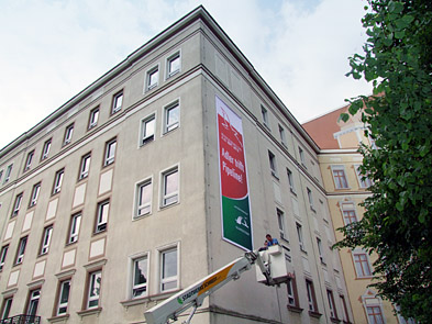 Seit dem 10. Juni 2010 lädt ein Banner an der Fassade des Rathauses zum BRANDENBURG-TAG ein. Die Stadt bedankt sich bei den ausführenden Firmen – Metallbau Betker aus Pinnow, Format Werbe GmbH sowie insbesondere bei den Stadtwerken für die Bereitstellung des Hubsteigers.