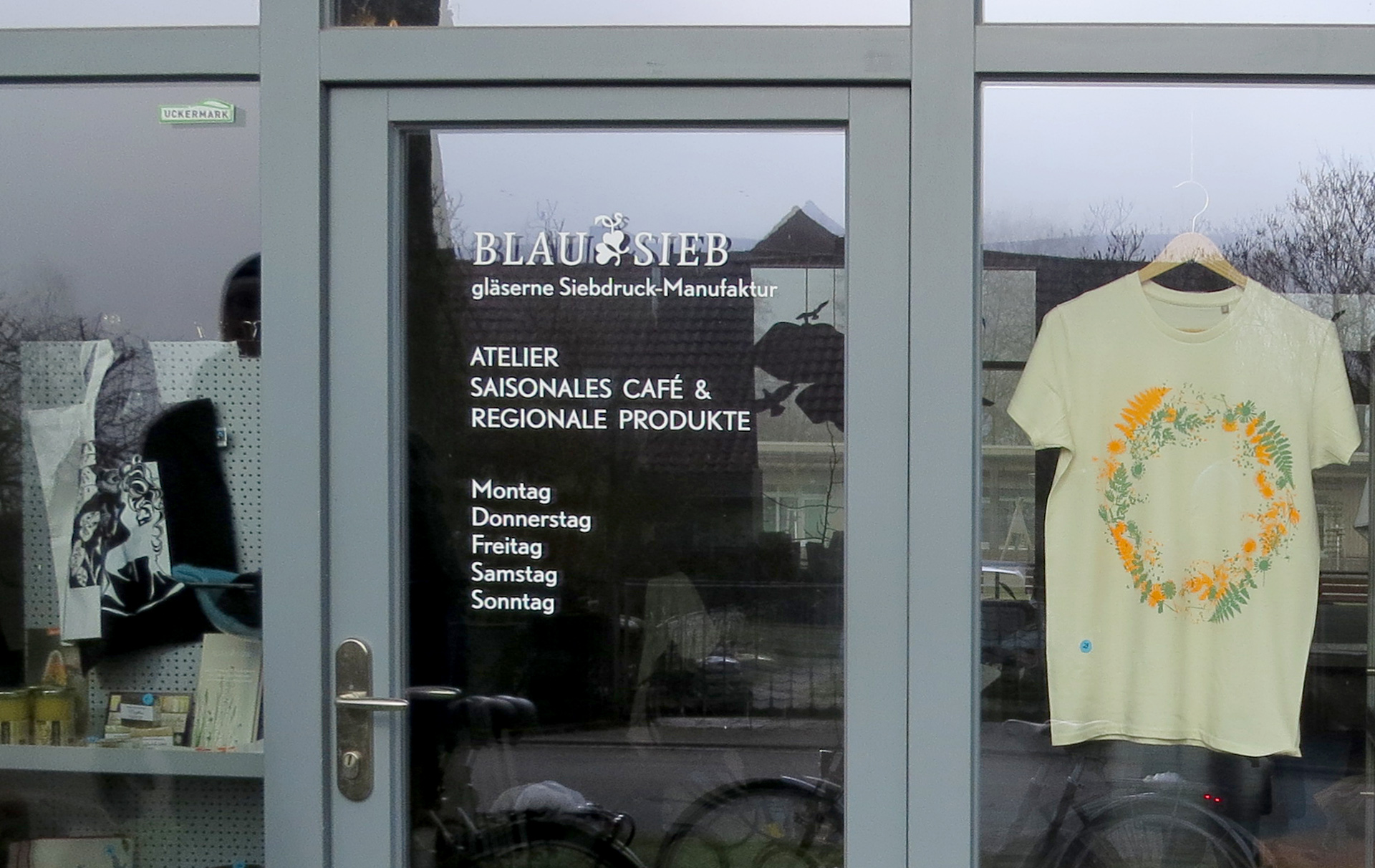 Susan Krieger ist bekannt für ihre Produkte in Handsiebdruck und ihre einmaligen und auffälligen Designs. Produkte wie Küchentücher und Tischwäsche werden nun in Criewen produziert und halten die Schönheit der uckermärkischen Wiesen fest. Besuchende können während den Öffnungszeiten im Atelier vorbeischauen, Susan Krieger bei der Arbeit zuschauen und ihre Design-Produkte erwerben. Darüber hinaus wird es auch regionale Produkte wie Honig, Naturseifen, Senf, Keramik, Apfelsaft u.v.m. geben.