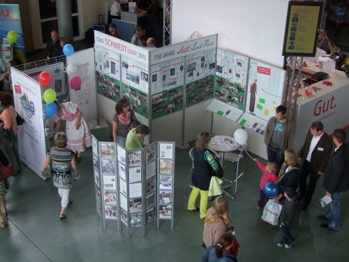 In der Ausstellung finden Interessenten am Fotowettbewerb „Bildpaare mit Schwedter Ansichten gesucht“ Anregungen. Ausgestellt sind hier auch einige Bildpaare, die in dem Heft „Schwedt in alten und neuen Ansichten. Teil 1“ enthalten sind. Wer an dem Fotowettbewerb teilnehmen möchte, hat noch bis zum 5. September Zeit. Erste Einsendungen liegen bereits vor. Das neue Material wird in einem 2. Teil des Heftes herausgegeben und vielleicht auch in einer neuen Ausstellung gezeigt.