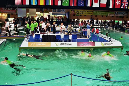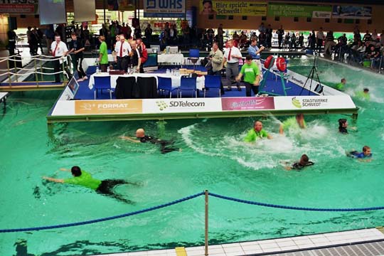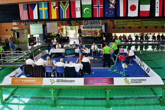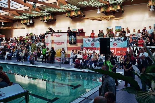 Extra für diese Veranstaltung wurde im Schwimmbecken des Bades eine Podest errichtet, auf die Wettkämpfe durchgeführt wurden. Das Ambiente war für alle Beteiligten einmalig.