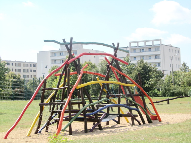 Zwischen beiden Straßen befindet sich ein Spielplatz, der im Sommer 2004 angelegt wurde. Bei dem Regenbogen-Projekt, das es seit 1998 gibt, trafen sich 27 Jugendliche aus Kanada, Südafrika, Polen und Deutschland zum Spielplatzbau. Auf der Regenbogenwiese wurden ein buntes Regenbogen-Klettergerüst, Schaukel, Wippe, Kletterspinne und Bänke aufgestellt.